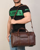 - CAMDEN Duffle Design : This stylish yet utilitarian textured leatherette duffle bag can be used for corporate travel as well as to take to the gym. The Large Spacious Compartment is suitable for 3-4 days weekender or business trip, can be used as a carry-on flight bag as well.